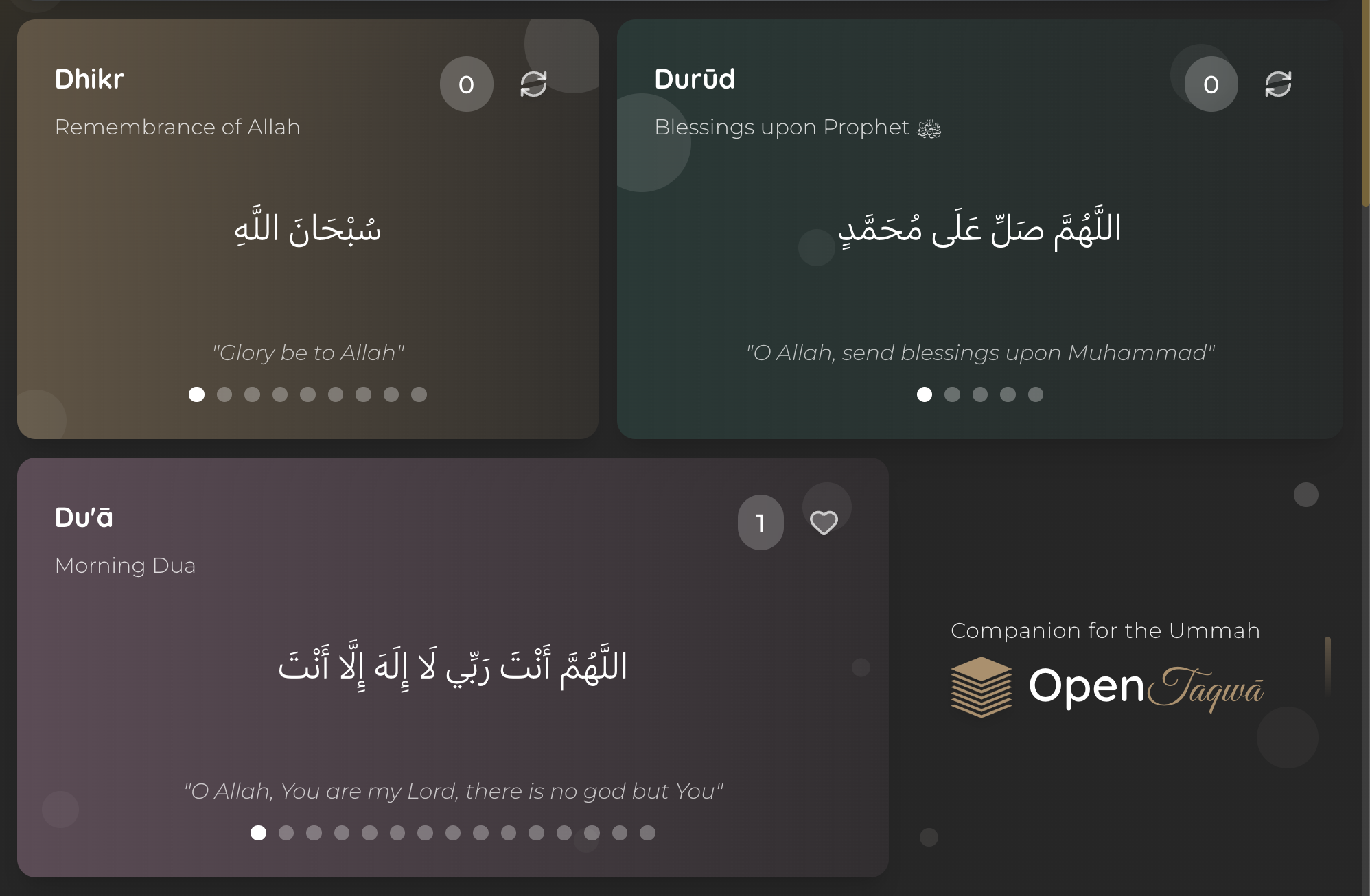 Keep track of your daily remembrance with our intuitive counter. Access a curated collection of authentic duas for every occasion.